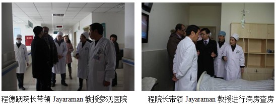 隨后,程院長(zhǎng)帶領(lǐng)Jayaraman教授進(jìn)行了病房查房活動(dòng)。在查房的過(guò)程中,醫(yī)院主任醫(yī)師詳細(xì)介紹了應(yīng)用燒傷再生療法如何治療深度創(chuàng)面,包括開(kāi)創(chuàng)引流、耕耘減張、壞死組織薄化、壞死組織液化排除等技術(shù),深深的吸引了Jayaraman教授。Jayaraman教授說(shuō):“我們的燒傷中心對(duì)于深二度以上的創(chuàng)面,一般都采用削痂植皮技術(shù),但今天我親眼看見(jiàn)了一種對(duì)壞死痂皮處理的一套新技術(shù)---創(chuàng)面無(wú)損傷、病人無(wú)痛苦、壞死組織自動(dòng)液化排除, 好技術(shù)、好技術(shù)。”