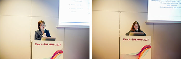 除展臺的展示外,再生醫(yī)療技術(shù)更是在會議中掀起一次次學(xué)術(shù)浪潮。大會首日下午,題為“重塑創(chuàng)面治療:從臨床實踐到技術(shù)創(chuàng)新”的再生醫(yī)療技術(shù)研討會順利召開。作為推動克林頓全球倡議(CGI)——“歐洲修復(fù)計劃:賦能歐洲再生醫(yī)療網(wǎng)絡(luò)構(gòu)建”的又一關(guān)鍵活動,研討會圍繞再生醫(yī)療技術(shù)在急慢性創(chuàng)面中的創(chuàng)新應(yīng)用展開討論。來自沙特 Sulaiman Al Habib醫(yī)療集團外科的Ziad Dalloul首先分享了馬喬林潰瘍的臨床管理策略,深入探討了再生醫(yī)療技術(shù)在復(fù)雜創(chuàng)面中的應(yīng)用及優(yōu)勢。隨后,西安市第九醫(yī)院燒傷整形科周小茜帶來了應(yīng)用自創(chuàng)微粒皮漿種植結(jié)合再生醫(yī)療技術(shù)治療慢性創(chuàng)面的演講,充分展示了該技術(shù)在促進慢性創(chuàng)面愈合中的優(yōu)勢。最后,來自菲律賓Quirino Memorial醫(yī)療中心燒傷科的Nikki Valencia分享了一項最新的系統(tǒng)回顧,全面證實了再生醫(yī)療技術(shù)在燒傷治療中的綜合療效、安全性、疼痛緩解及感染預(yù)防方面的顯著療效。