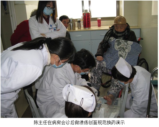 接著陳全喜主任講了規(guī)范使用方法,并給病人會診,做規(guī)范換藥演示。