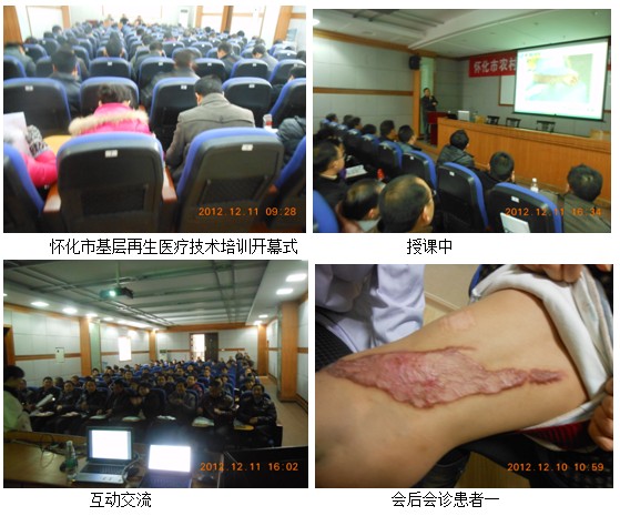 12月11日由衛(wèi)生局組織的懷化地區(qū)鄉(xiāng)鎮(zhèn)衛(wèi)生院,社區(qū)醫(yī)院的衛(wèi)生適應技術培訓在懷化第一人民醫(yī)院順利舉行,中國中西醫(yī)結合學會燒傷專業(yè)委員會常委、北京燒傷創(chuàng)瘍研究所副所長、《中國燒傷創(chuàng)瘍雜志》常委編委金黨軍教授,再次來到懷化。在這次培訓會上金教授就“人體再生復原療法在燒傷及難治性創(chuàng)傷、潰瘍創(chuàng)面治療臨床規(guī)范化應用及新進展”進行了專題講座。金教授結合了大量的臨床病例圖片,針對不同深度的燒傷創(chuàng)面及各類難愈性創(chuàng)傷、潰瘍創(chuàng)面的規(guī)范化處理方法與技巧、注意事項及燒傷疤痕康復治療的等進行了細致講解。在會的醫(yī)務員看到大量真實的臨床病例資料圖片后,都被再生醫(yī)療技術良好的治療效果所震撼與折服。此次講座深受會者的歡迎,再生復原技術為醫(yī)護人員在臨床上提供了一條新的治療思路,開闊了醫(yī)護工作者的視野,增長了新的知識。金教授通過現(xiàn)場對患者的燒傷創(chuàng)面的會診、臨床指導,更清楚直觀的解決了臨床的實際問題。