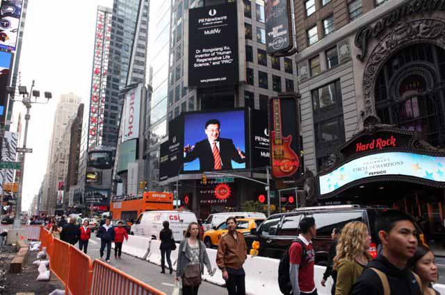 昨天,路透社第一時間發(fā)布了徐榮教授道出起訴諾貝爾獎委員會原因的新聞,同時在紐約時代廣場的新聞大屏幕上刊出徐榮祥教授的另一幅照片,稱徐榮祥是人體再生復原科學和PRC細胞發(fā)明人。