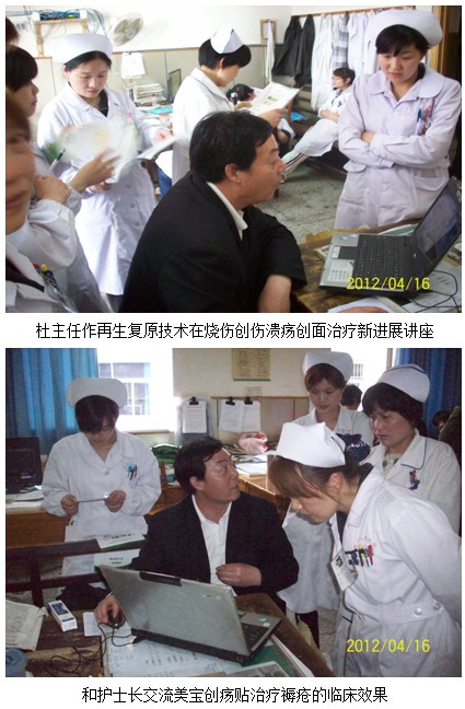 2012年4月16日中國中西醫(yī)結(jié)合學(xué)會燒傷專業(yè)委員會委員、北京美寶燒傷創(chuàng)瘍研究所臨床部研究員、燒傷創(chuàng)瘍專家杜福勤主任和駐黃山市陳義勝同志為歙縣人民醫(yī)院外科、骨科醫(yī)護人員作再生復(fù)原技術(shù)講座,受到參加學(xué)習(xí)的醫(yī)護人員歡迎,達(dá)到了推廣再生復(fù)原技術(shù)地目的。
