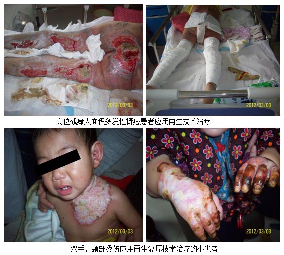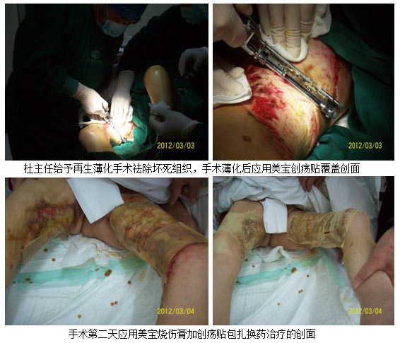 2011年6月,中國中西醫(yī)結合學會燒傷專業(yè)委員會技術推廣專家、北京美寶燒傷創(chuàng)瘍研究所臨床部主任杜福勤和學會駐安徽辦事處吳崇巍同志多次走訪皖北煤電總醫(yī)院燒傷整形科。繼2011年7月始,杜主任先后兩次近20天去皖北總醫(yī)院示范推廣再生復原技術治療燒傷、創(chuàng)瘍患者,經過再生復原技術的治療,獲得了良好效果,取得了患者的信任。2011年9月,中國中西醫(yī)結合學會燒傷專業(yè)委員會燒傷創(chuàng)瘍專家陳永翀教授去皖北總醫(yī)院幫助搶救大面積燒傷患者取得圓滿成功,獲得了院領導及燒傷科的認可和贊同,收到了良好臨床效果。