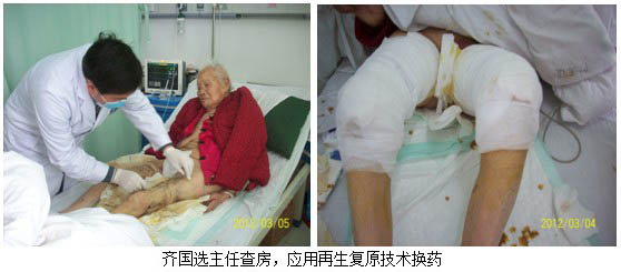2012年3月2日~5日中國中西醫(yī)結合學會燒傷專業(yè)委員會常委,北京美寶燒傷創(chuàng)瘍研究所臨床部杜福勤主任受齊國軒主任的邀請再次來到皖北總院為90歲高齡患者及高位截癱褥瘡患者會診。
