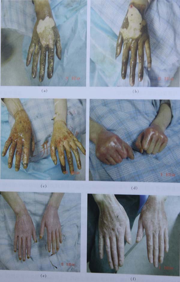 手是人類主要用于勞動和精細(xì)操作的器官,無衣物遮蓋,很容易被燒傷。為了保護患者手功能,采用MEBTMEBO治療手部燒傷和功能保護的護理措施,如預(yù)防凍結(jié)手(凍結(jié)指),加強功能鍛煉、做好防瘢護理措施等,取得了滿意的效果。以往西醫(yī)燒傷外科采用干燥-切(削)痂-植皮方法治療,使手燒傷留有不同程度的殘疾,尤其手深Ⅱ度至Ⅲ度燒傷后引起的功能障礙或手指殘缺直接影響到患者的工作、學(xué)習(xí)、勞動與生活質(zhì)量。