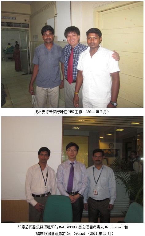 2010年6月9日美寶燒傷膏印度三期臨床試驗正式啟動。在時任印度燒傷學會主席Jayaraman的帶領(lǐng)下,和Madurai醫(yī)科大學附屬醫(yī)院院長Balasubramanian教授、B.G醫(yī)院Kannan醫(yī)生、Omshakthi醫(yī)院Poongodi醫(yī)生的共同努力下,在美寶國際市場集團總裁孫霞女士、總裁班子委員兼市場總部總經(jīng)理、印度美寶分公司董事總經(jīng)理劉鋼先生、中國燒傷創(chuàng)瘍科技中心臨床部主任、北京榮祥再生醫(yī)學研究所副所長、中國燒傷創(chuàng)瘍雜志社副社長陳永翀教授(以及參與臨床方案的其他專家)、時任技術(shù)支持專員張?。ìF(xiàn)任印度分公司副總經(jīng)理)、技術(shù)支持專員舒葉(現(xiàn)任國際市場技術(shù)總部產(chǎn)品主管)以及印度 CRO的MEBO團隊的大力支持與協(xié)作下;整個團隊克服重重困難,美寶燒傷膏印度三期臨床試驗于2011年10月28日正式完成臨床病例的采集工作(201例),這標志著首例中國的成品藥在印度的正式藥品注冊工作取得重大階段性成果,結(jié)束了藥品注冊最為關(guān)鍵的一個環(huán)節(jié),全面進入藥品注冊的后續(xù)攻堅階段。隨后,美寶國際市場集團總裁孫霞女士、總裁班子委員兼市場總部總經(jīng)理、印度美寶分公司董事總經(jīng)理劉鋼先生以及印度分公司副總經(jīng)理張印進行了全面考察與工作部署,并與印度知名上市醫(yī)療機構(gòu)MAX NEEMAN建立了臨床試驗后期、后期燒傷膏注冊的合作伙伴關(guān)系,打好燒傷膏注冊的攻堅戰(zhàn)。