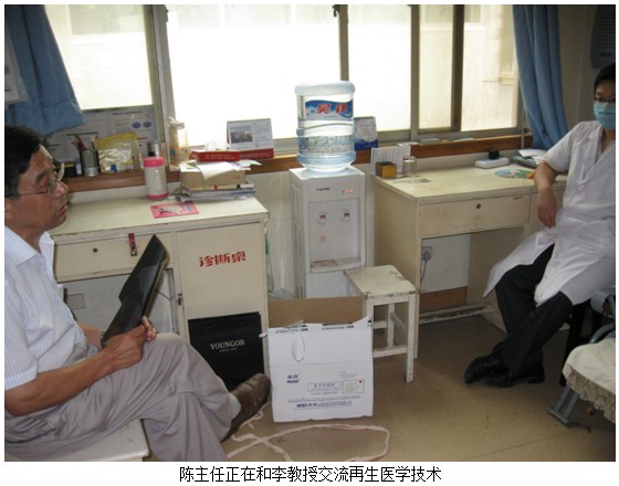 陳全喜同骨科李教授及孫副教授一塊會(huì)診病人?;颊?7歲,2011年12月4號(hào),因車禍造成右下肢脛腓骨粉碎性骨折。從臨床看,脛骨外漏長(zhǎng)12cm,寬6.3cm缺損。骨表面色黃,骨邊緣暗黃色,骨髓缺損(脛骨下端直踝關(guān)節(jié),未發(fā)現(xiàn)有骨髓)。骨缺損處呈不規(guī)則形,固定鋼板,固定針暴露,周圍皮膚暗黑,邊緣齊純。李教授說(shuō):“我們已經(jīng)做過(guò)六次手術(shù),其他部位都長(zhǎng)好了,就是這個(gè)部位長(zhǎng)不住?!标愔魅握f(shuō):“臨床最多見(jiàn)的是粉碎性骨折,尤其是脛前骨難以愈合。因?yàn)榧∪馍傺\(yùn)差,再加上有其他原因,這個(gè)部位是骨科醫(yī)生棘手的技術(shù)問(wèn)題。這種創(chuàng)面需用一種培養(yǎng)細(xì)胞的物質(zhì)對(duì)對(duì)其進(jìn)行治療,能起到一定的療效。美寶皮膚再生技術(shù)目前是國(guó)際上較前沿的高科技技術(shù),是培養(yǎng)創(chuàng)面局部缺損的細(xì)胞生長(zhǎng)增殖,激活潛藏骨髓、骨皮膚的潛能細(xì)胞。由潛能細(xì)胞轉(zhuǎn)化成體細(xì)胞,由體細(xì)胞轉(zhuǎn)化為干細(xì)胞,修復(fù)骨髓,骨缺損,皮膚組織。最終完成創(chuàng)面修復(fù)任務(wù)。經(jīng)過(guò)一段時(shí)間的治療,效果就會(huì)出現(xiàn)?!?/FONT>