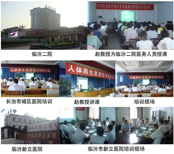 8月趙教授還在山西臨汾二院、臨汾開發(fā)區(qū)新立醫(yī)院(原解放軍醫(yī)院)、長治市城區(qū)醫(yī)院、黎城縣中醫(yī)院分別舉辦了三期全院再生復(fù)原技術(shù)培訓(xùn)班,一期全院科主任骨干培訓(xùn)班。受到了當(dāng)?shù)蒯t(yī)務(wù)人員的認(rèn)可和稱贊,為更好地推廣再生復(fù)原技術(shù)打下了堅實的基礎(chǔ)。