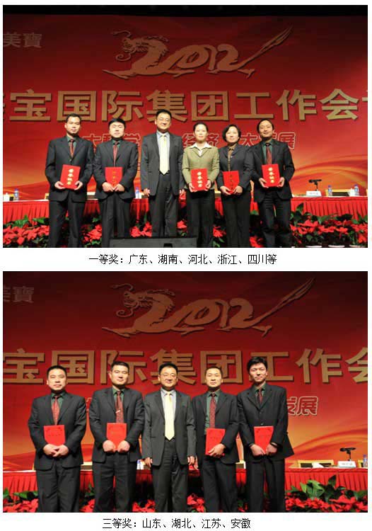 美寶燒傷創(chuàng)瘍集團(tuán)2011年度市場經(jīng)營業(yè)績表彰大會于2012年1月8日14:00在長安大飯店拉開帷幕。這次會議由燒傷創(chuàng)瘍集團(tuán)副總裁張坤主持,出席會議的有美寶國際集團(tuán)董事局主席徐榮祥、燒傷創(chuàng)瘍集團(tuán)總裁楊智斌及燒傷創(chuàng)瘍集團(tuán)全體人員,并由徐榮祥主席親自為所有獲獎人員頒獎。
