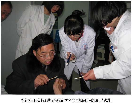 陳全喜主任講述了人體再生復(fù)原科學(xué)皮膚原位再生醫(yī)療技術(shù)的創(chuàng)立者,中國生命科學(xué)家徐榮祥教授;講述了皮膚原位再生醫(yī)療技術(shù)的原理,如何讓創(chuàng)面立體式暴露在一個(gè)生理濕潤環(huán)境內(nèi),自動(dòng)液化排除壞死皮膚,保護(hù)殘存皮膚細(xì)胞再生復(fù)原創(chuàng)面;講述了MEBT/MEBO在皮膚原位再生醫(yī)療技術(shù)指導(dǎo)配合下,如何實(shí)現(xiàn)皮膚原位再生修復(fù),如何使使致病菌變異,降低毒力,如何保護(hù)細(xì)胞,增強(qiáng)細(xì)胞膜張力,并使幾乎瀕臨壞死的細(xì)胞向具有生命力的正常細(xì)胞轉(zhuǎn)化,如何通過再生表皮干細(xì)胞作用使脂肪組織中的殘存上皮組織及血管叢和纖維組織重新再生皮膚,減少癲痕愈合和增強(qiáng)創(chuàng)面自愈能力。