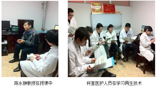 培訓會結(jié)束后,丁主任做了總結(jié)發(fā)言。丁主任對陳教授來院授課表示了深深的謝意,并要求科室的醫(yī)護認真學習再生技術(shù),提高業(yè)務技能。同時表示,將盡快把再生技術(shù)和產(chǎn)品引進醫(yī)院,爭取早日為患者造福。科室培訓會在熱烈的掌聲中結(jié)束。