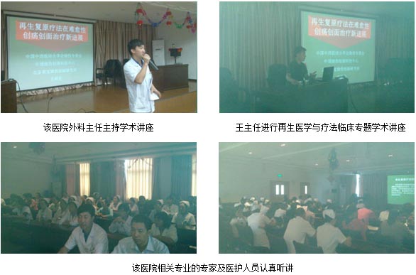 2011年9月8日,中國燒傷創(chuàng)瘍雜志副總編輯、中國中西醫(yī)結(jié)合學會燒傷專業(yè)委員會常委兼秘書、北京燒傷創(chuàng)瘍研究所副所長、臨床研究部主任王洪生研究員應修文縣人民醫(yī)院的邀請,來到該院作了“再生復原療法在燒傷及難治性創(chuàng)傷潰瘍創(chuàng)面治療新進展”學術培訓。