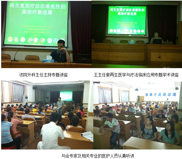 2012年10月23日,應(yīng)該院的邀請(qǐng)中國(guó)中西醫(yī)結(jié)合學(xué)會(huì)燒傷專(zhuān)業(yè)委員會(huì)常委兼秘書(shū),《中國(guó)燒傷創(chuàng)瘍雜志》副總編輯,北京燒傷創(chuàng)瘍研究所副所長(zhǎng)、臨床研究部主任王洪生研究員到該醫(yī)院進(jìn)行“再生復(fù)原療法在燒傷及難治性創(chuàng)傷、潰瘍創(chuàng)面治療臨床規(guī)范化應(yīng)用及新進(jìn)展”專(zhuān)題講座。專(zhuān)題學(xué)術(shù)講座于晚上7點(diǎn)半在該醫(yī)院會(huì)議室舉行,該院燒傷科,骨科,普外科,腫瘤科、內(nèi)科,皮膚科和婦產(chǎn)科的相關(guān)專(zhuān)業(yè)60余名專(zhuān)家及醫(yī)護(hù)人員參加了學(xué)術(shù)會(huì)議。在專(zhuān)題學(xué)術(shù)講座中,王主任結(jié)合了大量的臨床病例圖片,針對(duì)不同深度的燒傷創(chuàng)面及各類(lèi)難愈性創(chuàng)傷、潰瘍創(chuàng)面的規(guī)范化處理方法與技巧、注意事項(xiàng)等進(jìn)行了細(xì)致地講解。在會(huì)的醫(yī)護(hù)人員看到大量真實(shí)的臨床病例資料圖片后,都被再生醫(yī)療技術(shù)良好的治療效果所震撼與折服。此次講座深受會(huì)者的歡迎,再生復(fù)原技術(shù)為醫(yī)護(hù)人員在臨床上提供了一條新的治療思路,開(kāi)闊了醫(yī)護(hù)工作者的視野,增長(zhǎng)了新的知識(shí)。