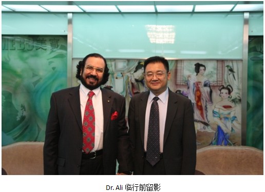 Dr. Ali十幾年來一直使用美寶技術(shù)及配套治療了許許多多的燒傷患者并在他所參加的各個會議上宣傳美寶科學(xué)技術(shù)。此次來訪期間,Dr. Ali還參加了在北京召開的第二屆歐洲整形會議,并在會議上做美寶的演講,反響十分強烈。他甚至用美寶的養(yǎng)生產(chǎn)品解決了很多人多年困擾的難題,如這次來訪會談間,他提起一個親眼鑒證的神奇的案例,在他的建議下,他的一個不孕癥朋友服用了美寶膠囊,八個月后發(fā)現(xiàn)居然不需要試管受精就成功自然受孕了。每當(dāng)他談起美寶科學(xué)技術(shù)和產(chǎn)品的神奇時總是滿臉興奮的神情溢于言表。