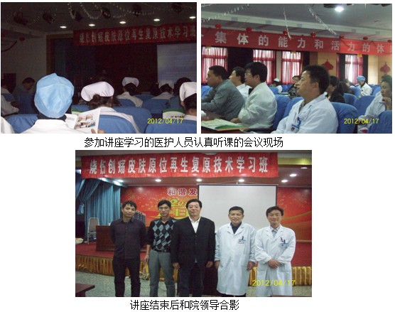 2012年4月17日中國(guó)中西醫(yī)結(jié)合學(xué)會(huì)燒傷專業(yè)委員會(huì)委員、北京美寶燒傷創(chuàng)瘍研究所臨床部研究員、燒傷創(chuàng)瘍專家杜福勤主任和陳義勝同志應(yīng)銅陵人民醫(yī)院業(yè)務(wù)院長(zhǎng)胡洪翔院長(zhǎng)和醫(yī)務(wù)科的邀請(qǐng),在人民醫(yī)院舉辦再生復(fù)原技術(shù)培訓(xùn)班,下午兩點(diǎn)半培訓(xùn)正式開始,醫(yī)務(wù)科張科長(zhǎng)主持,杜福勤主任以“再生復(fù)原技術(shù)在燒傷創(chuàng)傷潰瘍創(chuàng)面臨床治療新進(jìn)展”為題作了兩個(gè)小時(shí)演講。杜主任深入淺出、通俗易懂的介紹了徐榮祥教授創(chuàng)立再生復(fù)原醫(yī)學(xué)的歷程,再生復(fù)原技術(shù)在國(guó)內(nèi)外臨床推廣實(shí)踐進(jìn)展應(yīng)用情況,結(jié)合大量臨床資料介紹再生復(fù)原技術(shù)的臨床效果。重點(diǎn)介紹了美寶濕潤(rùn)燒傷膏、美寶創(chuàng)瘍貼、美寶疤痕軟膏的臨床應(yīng)用效果,臨床注意事項(xiàng)等。下午五點(diǎn)結(jié)束培訓(xùn),胡院長(zhǎng)因手術(shù)沒能趕上聽課,特盛情款待杜主任一行,并代表醫(yī)院感謝杜主任帶來了新的治療方法和新技術(shù),造福銅陵燒傷創(chuàng)瘍患者,福祉百姓。