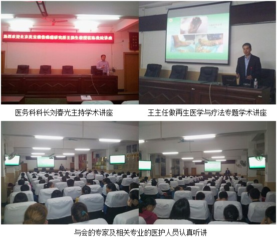 2012年11月19號,中國中西醫(yī)結(jié)合學(xué)會燒傷專業(yè)委員會常委兼秘書、《中國燒傷創(chuàng)瘍雜志》副總編輯、北京燒傷創(chuàng)瘍研究所副所長、臨床部主任王洪生研究員應(yīng)田東縣中醫(yī)院的邀請,到該醫(yī)院進行 “再生療法在難愈性創(chuàng)瘍創(chuàng)面治療新進展”專題臨床學(xué)術(shù)講座。