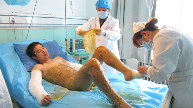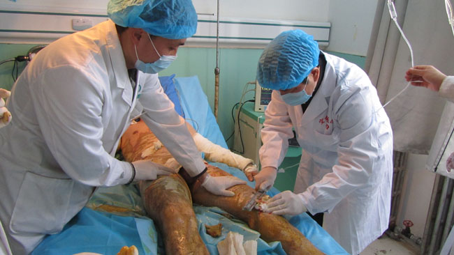 中國燒傷創(chuàng)瘍科技中心胡棟材教授曾多次蒞臨美寶燒傷創(chuàng)瘍空分醫(yī)院指導(dǎo)工作,這次看到醫(yī)院新裝修擴(kuò)建的病房整潔舒適,醫(yī)療設(shè)備齊全醫(yī)護(hù)人員為患者精湛醫(yī)療服務(wù)而甚感欣慰,胡教授說:“我們做的事業(yè)是積善積德的事情,要用我們的服務(wù)用我們先進(jìn)的技術(shù)治好更多的病患,服務(wù)于大眾”。在燒傷整形科的重癥監(jiān)護(hù)室,胡教授深入病房親自參與燒傷面積達(dá)到55%的三度硫酸燒傷患者的清創(chuàng)與換藥,并特別強(qiáng)調(diào)了規(guī)范操作細(xì)節(jié)的要求及重癥監(jiān)護(hù)室無菌病房的管理。在瘡瘍科胡教授對幾例重度褥瘡病人進(jìn)行了查房,并對于理想的治療效果給予贊揚(yáng)“咱們的褥瘡治療技術(shù)已經(jīng)達(dá)到了國際先進(jìn)水平!”