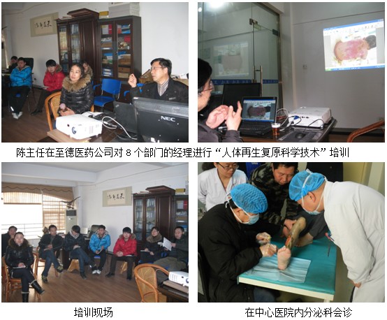 2013年元月18號(hào)下午2點(diǎn),中國中西醫(yī)結(jié)合學(xué)會(huì)燒傷專業(yè)委員會(huì)委員陳全喜主任醫(yī)師在新鄉(xiāng)市至德醫(yī)藥公司對(duì)8個(gè)部門的經(jīng)理進(jìn)行了“人體皮膚原位再生醫(yī)療”技術(shù)的培訓(xùn)。