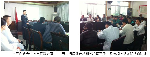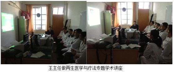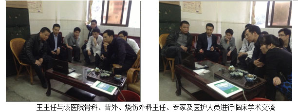 學(xué)術(shù)講座于當日下午下午4:00在該醫(yī)院的外科主任辦公室召開。該醫(yī)院的骨外科何平主任、普外科劉主任及其醫(yī)院各外科系統(tǒng)負責人及醫(yī)護人員10余人參加了講座會議。會中,王主任結(jié)合了大量的臨床病例圖片,主要針對燒傷、糖尿病足、褥瘡等各類難愈性創(chuàng)傷、潰瘍創(chuàng)面的規(guī)范化處理方法與技巧、注意事項等進行了細致地講解。會議持續(xù)到下午近六點,何主任表示再生療法在臨床上相對于他們來說,是一個全新的治療方法,他們都感到非常的信服,希望王主任以后再臨床上能多多的指導(dǎo),以更好的造福于患者。