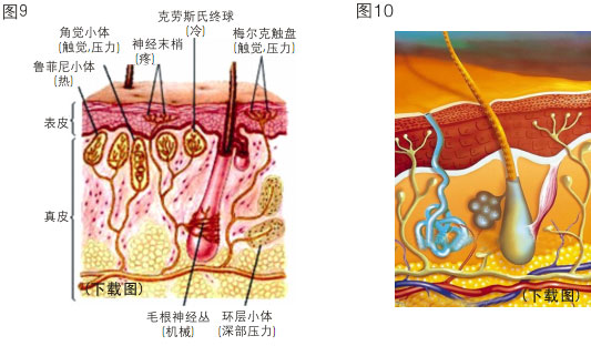 皮膚器官中的神經(jīng)組織主要是神經(jīng)纖維和各種神經(jīng)小體,具有接受刺激和傳導興奮的功能,是皮膚及皮膚附件活動的功能單位。