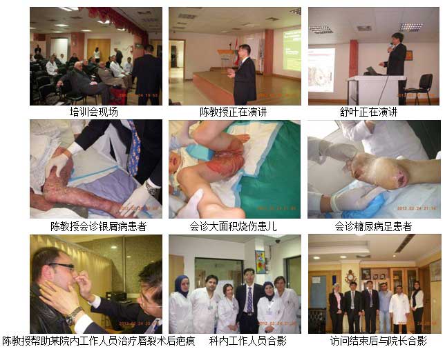 3. 2月24日9點(diǎn),受到DAR AL-AMAL UNIVERSITY HOSPITAL醫(yī)院的邀請(qǐng),美寶團(tuán)隊(duì)趕到距離貝魯特2個(gè)小時(shí)車程的貝爾貝克市進(jìn)行產(chǎn)品推廣。該醫(yī)院是一所私立大學(xué)附屬醫(yī)院。在為20余名該院各科高年資醫(yī)師做完再生醫(yī)學(xué)技術(shù)和產(chǎn)品介紹后,陳永翀教授在整形科主任的陪同下為三例患者進(jìn)行了會(huì)診。第一位是老年銀屑病患者并發(fā)潰瘍伴全身多器官功能障礙;第二位是一個(gè)8歲學(xué)齡期兒童,三度大面積燒傷患者;第三位是老年糖尿病潰瘍患者。在看完病例之后,陳教授給予一一解答,再生醫(yī)療技術(shù)可以解決上述全部問題,只要進(jìn)行規(guī)范的創(chuàng)面處理并進(jìn)行合理的系統(tǒng)治療,所有病人的創(chuàng)面都可以最快速度的愈合。他同時(shí)建議銀屑病患者脫角質(zhì)創(chuàng)面可以嘗試使用美寶疤痕平軟膏,將會(huì)得到意想不到的效果;大面積燒傷患兒要及時(shí)清除液化壞死組織;糖尿病患者要積極控制血糖水平。