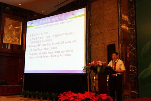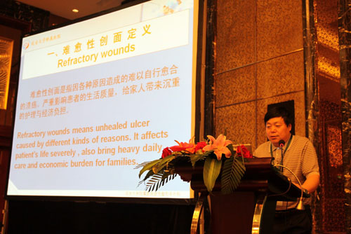 學(xué)術(shù)交流于8點(diǎn)30正式開(kāi)始,國(guó)內(nèi)外代表輪流進(jìn)行學(xué)術(shù)交流報(bào)告。首先,來(lái)自馬來(lái)西亞的燒傷整形外科醫(yī)生Dr. Shah Jumaat BinMohd Yussof以“再生醫(yī)療技術(shù)與微粒皮種植術(shù)在雙溪毛魯醫(yī)院的臨床經(jīng)驗(yàn)”為主題進(jìn)行了交流;接著,趙賢忠教授以“疤痕移除原位再生皮膚組織器官的研究”為主題進(jìn)行交流;來(lái)自敘利亞整形外科中心主任Dr. Adham mansour以“20年再生醫(yī)療技術(shù)在敘利亞的臨床應(yīng)用經(jīng)驗(yàn)”為主題進(jìn)行學(xué)術(shù)報(bào)告;來(lái)自馬來(lái)西亞的婦產(chǎn)科醫(yī)生Dr.Noor HaIiZa Yussoff以“再生醫(yī)療技術(shù)治療感染的腹部手術(shù)切口以及其它婦產(chǎn)科創(chuàng)面的臨床經(jīng)驗(yàn)”為主題作了交流;隨后,來(lái)自四川什邡程德躍院長(zhǎng)介紹了皮膚原位再生復(fù)原技術(shù)在磷燒傷創(chuàng)面治療中的臨床應(yīng)用,什邡地區(qū)是磷燒傷多發(fā)的區(qū)域,當(dāng)?shù)氐幕S多,在多年的臨床實(shí)踐中,他們積累了大量經(jīng)驗(yàn),為數(shù)百位磷燒傷患者挽救了生命,使創(chuàng)面得到了良好地愈合;成都市第三人民醫(yī)院的龔麟主任介紹了原位再生醫(yī)療技術(shù)在美容激光治療后修復(fù)皮膚的經(jīng)驗(yàn),他展示了大量美容案例,有面部雀斑、血管瘤、瘢痕、復(fù)發(fā)性甲溝炎、紋身的祛除等,效果顯著;印度尼西亞臨床教育培訓(xùn)中心主席、整形外科醫(yī)生Dr. Teddy O.H. Prasetyono博士介紹了瘢痕為主的創(chuàng)面愈合,這位醫(yī)生給代表們的印象非常深刻,他雖然是一位殘疾人,但是他的演講生動(dòng),富有感染力,從他所介紹的病例中可以看出,他對(duì)于皮膚再生醫(yī)療技術(shù)的認(rèn)可與敬業(yè)精神;之后,四川甘孜州人民醫(yī)院燒傷整形科主任李正希介紹了皮膚再生醫(yī)療技術(shù)在高原地區(qū)的應(yīng)用體會(huì),李主任曾經(jīng)是一位胸外科醫(yī)生,由于甘孜州地處高原,很多燒傷患者從前只能送至成都等地的醫(yī)院救治,往往因?yàn)殄e(cuò)過(guò)了治療的最佳時(shí)機(jī),給患者的生命安全乃至創(chuàng)面的愈合造成不利的影響,于是,他在學(xué)習(xí)了皮膚再生醫(yī)療技術(shù)之后,在醫(yī)院的支持下成立了燒傷科,從此,當(dāng)?shù)匾患?jí)周邊的燒燙傷患者在當(dāng)?shù)鼐涂梢缘玫搅己玫木戎?;突尼斯?guó)家骨科研究研究院理療康復(fù)科骨外科主任Dr. Catherine Dziril教授分享了她應(yīng)用再生醫(yī)療技術(shù)治療壓瘡的經(jīng)驗(yàn);四川雅安人民醫(yī)院燒傷整形科主任付子俊介紹了皮膚癌的臨床治療體會(huì),付主任和他的團(tuán)隊(duì)不僅僅規(guī)范地將皮膚再生醫(yī)療技術(shù)應(yīng)用于燒傷創(chuàng)瘍等創(chuàng)面的修復(fù)中,尤其擅長(zhǎng)治療皮膚癌,大量的皮膚癌患者經(jīng)過(guò)治療后均痊愈并無(wú)復(fù)發(fā)發(fā)生;陜西安康市中醫(yī)院王俊主任介紹了MEBO治療面部軟組織缺損的臨床體會(huì);河南寶豐中醫(yī)院任建生主任介紹了斷指再生治療經(jīng)驗(yàn),他所治療的一位患者被評(píng)為第三屆創(chuàng)瘍康復(fù)明星,這位患者的手指末端離端得到了完全再生修復(fù),這種修復(fù)不僅僅是皮膚的再生修復(fù),而是包括指甲在內(nèi)的手指的全部組織器官的再生修復(fù),斷指的再生修復(fù)在很多醫(yī)院都有大量病例,本屆會(huì)議的交流資料《燒傷創(chuàng)瘍康復(fù)明星集萃》中發(fā)布了很多典型的斷指再生修復(fù)病例;四川涼山衛(wèi)校馮映東院長(zhǎng)介紹了高壓電弧燒傷的MEBO治療分析;成都大學(xué)附屬醫(yī)院急診科主任梁隆斌教授介紹了再生醫(yī)療技術(shù)在各種急診創(chuàng)面的應(yīng)用,急診的外傷患者較多,及時(shí)的創(chuàng)面處理為后續(xù)的治療節(jié)省了寶貴的時(shí)間,而且,有的患者經(jīng)過(guò)門診治療后,由于康復(fù)時(shí)間縮短,節(jié)省了因住院給患者帶來(lái)的經(jīng)濟(jì)負(fù)擔(dān);延安大學(xué)附屬醫(yī)院薛宏斌主任介紹了難愈性創(chuàng)面的MEBT/MEBO臨床應(yīng)用;中國(guó)中西醫(yī)結(jié)合學(xué)會(huì)燒傷專業(yè)委員會(huì)委員金黨軍主任介紹了皮膚原位再生復(fù)原技術(shù)瘢痕防治臨床規(guī)范應(yīng)用,金主任對(duì)瘢痕的防治有著多年的臨床經(jīng)驗(yàn),尤其掌握了規(guī)范的操作技術(shù),很多醫(yī)院的醫(yī)生和患者在遇到此類問(wèn)題的時(shí)候,都會(huì)向他請(qǐng)教,他通過(guò)各種方式對(duì)醫(yī)生和患者進(jìn)行指導(dǎo);江蘇金壇中醫(yī)院燒傷整形科戴揚(yáng)主任分享了他在應(yīng)用皮膚再生醫(yī)療技術(shù)治療燒傷等創(chuàng)面的經(jīng)驗(yàn)。