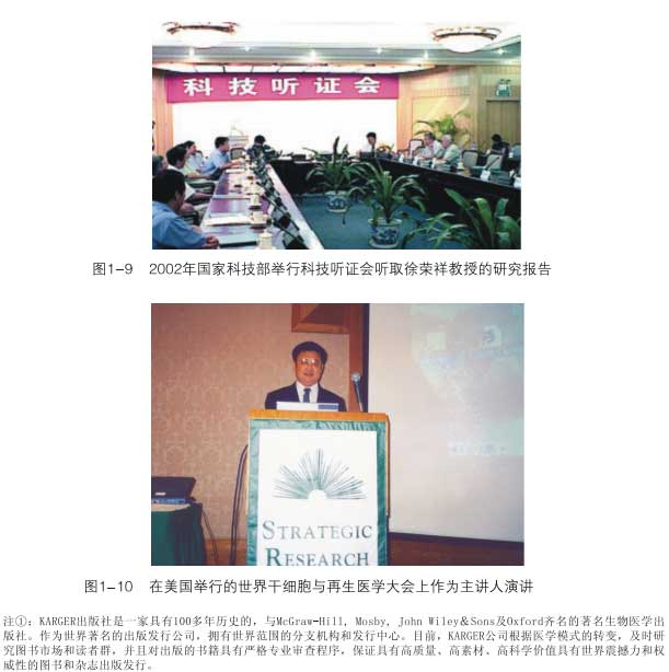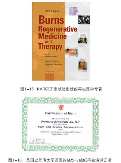 雖然我們在國際國內(nèi)學術(shù)會議上反復(fù)地講解身體內(nèi)由體細胞轉(zhuǎn)化為干細胞的實際規(guī)律,但世界胚胎干細胞研究的狂潮席卷生命科學界,各大學和醫(yī)院都設(shè)立胚胎干細胞研究室,都在按同一個夢想奮進。于是,我們又在2002年8月,搞了一個生命科學大爆炸新聞發(fā)布會,宣布已成功地實現(xiàn)了體細胞轉(zhuǎn)化為干細胞(潛能再生細胞)再克隆器官的全過程,公布了克隆出的組織器官實物,并宣稱5年后完成人類組織器官的全部復(fù)制。國家科技部也組織院士進行了科學聽證會議,隨即,美國舉行的世界干細胞與再生醫(yī)學大會和在新加坡舉行的干細胞大會特約我做嘉賓作如何用體細胞克隆組織器官、和臨床如何用于治療創(chuàng)傷和胃腸潰瘍疾病的專題演講。2004年,世界三大醫(yī)學文獻出版社之一的瑞士KARGER出版社①正式出版了我的再生醫(yī)學英文專著《燒傷再生醫(yī)學與療法》,封底書評介紹,這是一本用臨床應(yīng)用實踐陳述普通細胞原位再生皮膚器官過程的書,對細胞生物學、干細胞研究、免疫學研究等,都有著極其重要的價值。出版社為了對大家的科學研究產(chǎn)生有利的作用,在出版社的網(wǎng)站上寫道:這是一本“革命性的和令人驚奇的”著作。這樣的呼吁,在世界范圍內(nèi)產(chǎn)生了較大的影響,比如德國、英國、美國等國知名的生命科學家專程來華與我們交流干細胞的研究,瑞典科學委員會委托國家電視臺專程來華采訪。美國史丹佛大學特約去大學作專題學術(shù)報告,美國哈佛大學皮膚學教授們專程到家里進行學術(shù)交流。