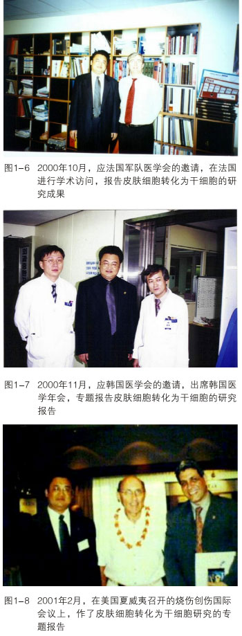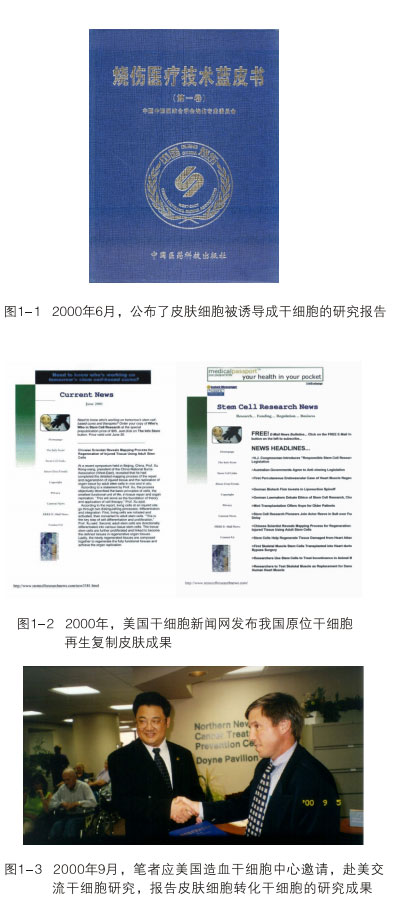 21世紀前葉,美國科學雜志將胚胎干細胞研究評為1999年度世界十大科學成就之首,但惹來了生命倫理的爭論。而我們的研究早已破解了皮膚器官再生的秘密,則在1997年培訓(xùn)全國的高級職稱醫(yī)生如何再生復(fù)原大面積深度燒傷后的皮膚。當看到幾乎是全世界的生命科學家都掀起了胚胎干細胞研究的熱潮時,我們的心情同樣是激動,但這種激動并不是歡呼胚胎干細胞的研究,而是為這種熱潮感到擔心,因我們的研究所得到的干細胞規(guī)律并不是他們想象的那樣,作為生命科學的研究者都應(yīng)該懂得,細胞生命規(guī)律無論是胚胎來的干細胞,還是成體組織來的干細胞,其生命規(guī)律是一致的。不應(yīng)該再出現(xiàn)別的規(guī)律。究竟是誰對誰錯?我們肯定的回答,我們的發(fā)現(xiàn)不會錯!因為我們是從已經(jīng)獲得的器官破解的干細胞生命規(guī)律,是已經(jīng)完成和實現(xiàn)的。而胚胎干細胞想象的克隆器官的規(guī)律只是幻想出來的,還沒有實踐證實。于是,為了給世界熱衷于胚胎干細胞研究的生命科學家提個醒,我們于2000年6月正式出版了著作,公布了皮膚組織細胞可轉(zhuǎn)化為干細胞再生器官的臨床結(jié)果和生命規(guī)律的秘密。并舉行了中外新聞發(fā)布會,為了讓大家深刻地明白,我們又借助《科技日報》,進行了幾萬字的破解體細胞轉(zhuǎn)干細胞再生器官探秘過程的曝光報道。這是人類發(fā)明體細胞轉(zhuǎn)化為干細胞、原位再生復(fù)原組織和器官科學體系的科學突破起始點。相繼于2001年舉行了胃腸組織細胞克隆胃腸器官獲得成功的中外新聞發(fā)布會,重復(fù)了皮膚細胞轉(zhuǎn)化為干細胞的科學規(guī)律。在完成系統(tǒng)的研究后,我們申報了這一科學平臺的美國、歐洲、中國專利,現(xiàn)已獲得專利權(quán)。(附一組在國際上傳播體細胞轉(zhuǎn)化形成干細胞成果足跡的照片)