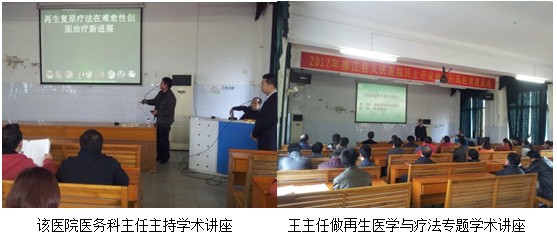 學(xué)術(shù)講座于當(dāng)日下午3時(shí)在該醫(yī)院會(huì)議室舉行,王主任以“再生復(fù)原療法在難愈性創(chuàng)面治療新進(jìn)展”為題進(jìn)行了專題學(xué)術(shù)講座。該院相關(guān)科室的專家及醫(yī)護(hù)人員參加了此次培訓(xùn),在學(xué)術(shù)講座中,王主任首先向與會(huì)的專家介紹了著名生命科學(xué)家、醫(yī)學(xué)家、人體再生復(fù)原科學(xué)的創(chuàng)立者、再生復(fù)原療法的發(fā)明人徐榮祥教授近年來(lái)在再生醫(yī)學(xué)領(lǐng)域所取得的重大實(shí)驗(yàn)及臨床研究成果,而后王主任結(jié)合了大量的臨床病例圖片及錄像資料,主要針對(duì)各類難愈性創(chuàng)傷、潰瘍創(chuàng)面的規(guī)范化處理方法與技巧、注意事項(xiàng)等進(jìn)行了細(xì)致講解,在座的各位醫(yī)護(hù)均被這神奇的療法折服。