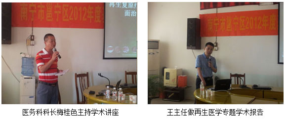 2012年9月17日下午,中國(guó)中西醫(yī)結(jié)合學(xué)會(huì)燒傷專業(yè)委員會(huì)常委兼秘書、中國(guó)燒傷創(chuàng)瘍雜志副總編輯、北京燒傷創(chuàng)瘍研究所副所長(zhǎng)、臨床部主任王洪生研究員應(yīng)邕寧區(qū)中醫(yī)醫(yī)院的邀請(qǐng),到該醫(yī)院進(jìn)行 “再生療法在難愈性創(chuàng)瘍創(chuàng)面治療新進(jìn)展”專題臨床學(xué)術(shù)講座。