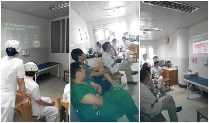 應(yīng)煙臺山醫(yī)院的邀請,2014年7月9日下午北京燒傷創(chuàng)瘍研究所副所長趙瑞慶教授在該院舉辦了一期多科室燒傷創(chuàng)瘍再生醫(yī)學與療法培訓班。參加培訓的醫(yī)務(wù)人員主要來自運動醫(yī)學科、手外科、創(chuàng)傷二科、骨腫瘤等科室的業(yè)務(wù)骨干。趙瑞慶教授在培訓班上做了《21世紀濕性醫(yī)用敷料的新進展》的講座。著重介紹了外科敷料的發(fā)展過程,干性敷料濕性敷料臨床運用的對比,分析了干性敷料存在的缺陷。重點敘述了醫(yī)用復(fù)合敷料(創(chuàng)瘍貼)的作用機制臨床運用五大優(yōu)勢(改善微循環(huán)學等)。三隔離臨床效果,在創(chuàng)面修復(fù)過程中的液化機制。