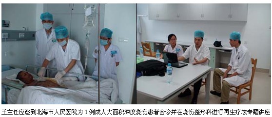 5月11號(hào),中國(guó)中西醫(yī)結(jié)合學(xué)會(huì)燒傷專業(yè)委員會(huì)常委、中國(guó)燒傷創(chuàng)瘍雜志社副總編輯、北京燒傷創(chuàng)瘍研究所副所長(zhǎng)、臨床部王洪生主任受北海市人民醫(yī)院燒傷整形科主任周寧副主任醫(yī)師邀請(qǐng),到該醫(yī)院燒傷整形科為一例深度燒傷總面積達(dá)90%的成人燒傷患者會(huì)診。