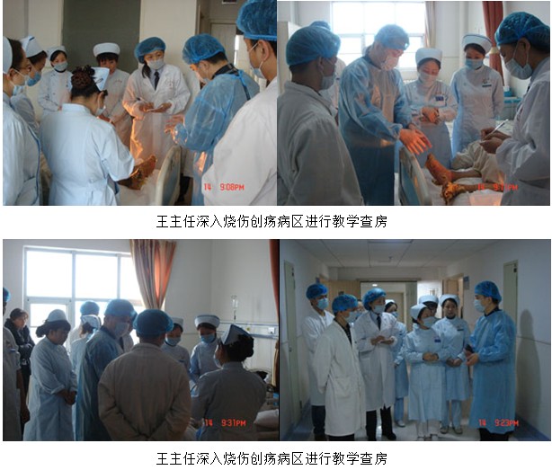 2013年4月15日上午9時,王主任應(yīng)邀再次來到該醫(yī)院燒傷創(chuàng)瘍手外科病房對在該科室住院的燒傷創(chuàng)瘍患者進行教學查房,并應(yīng)邀親自為1例雙足及小腿深度燒傷患者進行清創(chuàng)換藥,向該科室的醫(yī)護人員展示再生醫(yī)療技術(shù)規(guī)范的創(chuàng)面清創(chuàng)換藥技術(shù),帶教結(jié)束后,王主任在該科室會議室又對該科室的醫(yī)護人員進行再生復原療法在特重度燒傷系統(tǒng)治療要點進行技術(shù)培訓和交流。通過此次培訓,該科室的全部醫(yī)護人員基本掌握了再生醫(yī)療技術(shù)的規(guī)范化操作,對該科室的發(fā)展起到了重要作用。