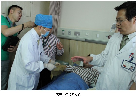 隨著院方引導(dǎo)員的指引,專(zhuān)家們來(lái)到了此次參觀的重點(diǎn)部分——燒創(chuàng)傷科室,在此接待的是燒傷科的趙主任。趙主任首先介紹了美寶再生產(chǎn)品在醫(yī)院的使用情況,隨后將專(zhuān)家們帶進(jìn)住院病房,分別通過(guò)一個(gè)燒傷病例和一個(gè)褥瘡病例展示了美寶產(chǎn)品在治療燒傷創(chuàng)瘍領(lǐng)域的獨(dú)特功效。第一個(gè)病例是一個(gè)深二度燒傷病人,趙主任展示了經(jīng)過(guò)一段時(shí)間美寶燒傷膏的使用病人的恢復(fù)情況,并現(xiàn)場(chǎng)對(duì)國(guó)際專(zhuān)家并行了美寶燒傷膏換藥的操作示范,使專(zhuān)家團(tuán)對(duì)美寶產(chǎn)品有了更加全面和更加深入的認(rèn)識(shí)。