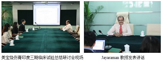 2012年2月27日,Jayaraman教授應美寶國際市場集團印度分公司副總經(jīng)理張印邀請,出席了美寶燒傷膏印度三期臨床試驗總結研討會議并參觀訪問了美寶總部。