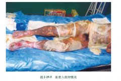 人體皮膚浸泡于汽油,其中的碳氫化合物具有溶解脂肪的特性,使皮膚細胞膜磷脂破壞致細胞壞死。汽油浸泡燒傷多為Ⅱ度燒傷,燒傷創(chuàng)面局部紅腫,出現水皰,創(chuàng)面較清潔,與周圍健康組織分界清楚,一般34周愈合,嚴重者亦可出現Ⅲ度燒傷。