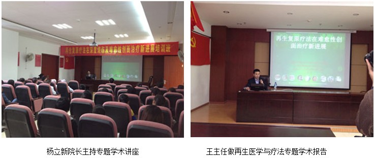 2012年11月16日下午應(yīng)該院楊立新院長的邀請, 中國中西醫(yī)結(jié)合學(xué)會燒傷專業(yè)委員會常委兼秘書、《中國燒傷創(chuàng)瘍雜志》副總編輯、北京美寶燒傷創(chuàng)瘍研究所副所長、臨床研究部主任王洪生研究員來到該院,對該院醫(yī)護(hù)人員進(jìn)行再生復(fù)原療法在深度燒傷及難愈性創(chuàng)面和各種潰瘍治療新進(jìn)展的規(guī)范性培訓(xùn)及學(xué)術(shù)交流。王主任結(jié)合大量真實的臨床病例圖片,就再生復(fù)原療法在難愈性創(chuàng)瘍創(chuàng)面治療上的一種新方法,對不同深度的燒傷創(chuàng)面及各類難愈性創(chuàng)傷、潰瘍創(chuàng)面的規(guī)范化處理方法與技巧、注意事項等進(jìn)行了細(xì)致的講解,強(qiáng)調(diào)創(chuàng)面處理要大膽清創(chuàng)、減壓、去除壞死組織,并保持創(chuàng)面生理的濕潤環(huán)境,實現(xiàn)創(chuàng)面的再生復(fù)原。會后外科的醫(yī)生就高壓電燒傷顱骨開窗等系列問題請教了王主任,并一一作答。