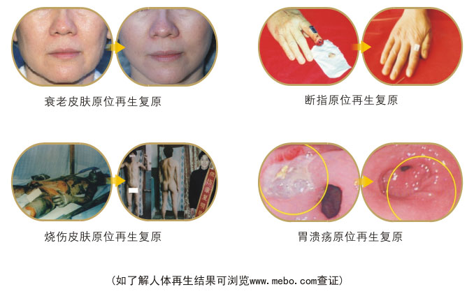 我們在燒傷后皮膚器官再生的研究中,實(shí)現(xiàn)了在失去皮膚器官的創(chuàng)面上重新再生出新的皮膚全部器官,破解了皮膚器官原位再生的秘密,繼而實(shí)現(xiàn)了人體各器官的原位再生,并確立了人體器官中具有第二次生命再生的細(xì)胞——潛能再生細(xì)胞的科學(xué)體系,最終使全身全厚皮燒傷的皮膚原位再生、斷指再生、胃腸再生等多器官的原位再生不再僅僅是科學(xué)夢想,而已成為事實(shí)。這一系列發(fā)明創(chuàng)舉,均獲得了國際著作權(quán)和美國、中國等多項(xiàng)專利權(quán),名副其實(shí)地成為實(shí)現(xiàn)體細(xì)胞克隆器官、原位器官再生、人體再生的世界唯一。我們用皮膚潛能再生細(xì)胞再生為原位干細(xì)胞,用原位再生更新和再生復(fù)原皮膚全部器官的技術(shù),實(shí)現(xiàn)了正常皮膚的再生更新維持、衰老皮膚的再生復(fù)原年輕、使皮膚器官的抗衰老和留住青春變?yōu)槭聦?shí);美寶皮膚原位再生復(fù)原技術(shù)就是由器官原位再生技術(shù)演化而來的。