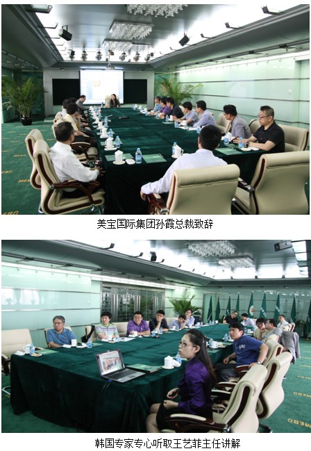 6月15日,韓國專家及一行人等在美寶國際集團國際市場部韓國經(jīng)理孫園的帶領(lǐng)下,到美寶總部參觀學習。美寶國際市場集團孫霞總裁代表集團對來訪嘉賓致歡迎詞,并簡單介紹了美寶集團的整體情況。