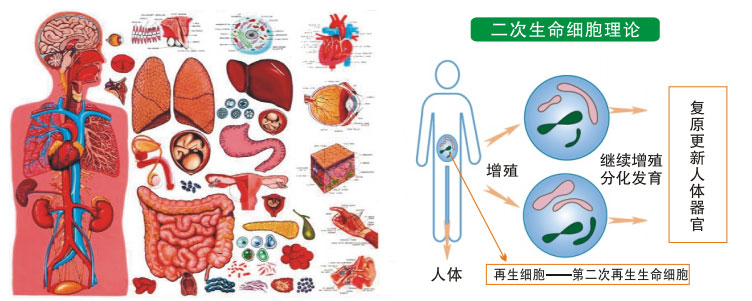 這個(gè)基礎(chǔ)就是人有二次再生生命,從精子、卵子融合為一個(gè)細(xì)胞,在生命的條件下發(fā)育成人體,這個(gè)受精卵發(fā)育出的細(xì)胞就一直延續(xù)到人的去世,這個(gè)生命就是細(xì)胞的第一次生命,那人的第二次再生生命從哪里來?不可能是精子與卵子再次結(jié)合形成,那樣就成了另一個(gè)人了。即使克隆人,那也不是原來的他,也是另一個(gè)人。我們這些年一直在探索,人的第二次再生生命到底有沒有,若有的話,到底在哪里?原來只是想像,是個(gè)夢(mèng)想,可我在實(shí)踐中發(fā)現(xiàn),就是當(dāng)年在治療燒傷的時(shí)候,讓那些燒傷病人失去的皮膚重新長(zhǎng)出來的細(xì)胞。20世紀(jì)80年代我就提出了人體可以再生的理論,雖然當(dāng)時(shí)還只限于皮膚,可還是誰(shuí)都不信,有些人還罵我是大騙子,而且還一直罵了那么多年,到了2000年,都開始改口了,事實(shí)證明他們錯(cuò)了??晌覀兒茉缇鸵呀?jīng)開始了皮膚再生的規(guī)律延伸到其他器官再生的研究,當(dāng)時(shí)我就想皮膚再生了,其他器官能不能再生?我按照當(dāng)時(shí)總結(jié)的規(guī)律,先落實(shí)到胃腸再生的研究上。因?yàn)楫?dāng)時(shí)考慮到人的胃腸和皮膚不是同一個(gè)胚胎層發(fā)育來的,胃腸再生成功,就意味著這個(gè)胚胎層發(fā)育的器官也有可能再生,于是我就開始研究,參考皮膚研究的經(jīng)驗(yàn),從細(xì)胞層面來研究胃腸粘膜,最后實(shí)現(xiàn)了人的胃腸粘膜的再生,后來又實(shí)現(xiàn)了衰老的胃腸半年就恢復(fù)成較年輕的的結(jié)果。這個(gè)胃腸再生的成功,比我們燒傷皮膚再生、斷指再生意義還要大。這就是說已經(jīng)把人的整個(gè)內(nèi)部器官代表了,胃腸粘膜的全部更新代表著人的內(nèi)臟器官的全部更新。我們從90年代初就開始琢磨胃腸再生的程序,1997年完成了第一步。2000年公布了我們的研究成果。2002年又從胃腸擴(kuò)展到55個(gè)組織器官。2002年我們就搞了個(gè)“生命科學(xué)大爆炸”,當(dāng)時(shí)一天就有3000萬條新聞,我們又繼續(xù)堅(jiān)持研究了5年,實(shí)現(xiàn)了所有器官的更新。我們之所以很快成功就是因?yàn)檎业搅松偕茖W(xué)的門?,F(xiàn)在人體綜合器官原位再生已經(jīng)完成,看上去,我們的完成顯得這么簡(jiǎn)單,這么順利。 顯得很簡(jiǎn)單的原因就在于我們找到了第二次再生生命細(xì)胞,這個(gè)細(xì)胞就是在精子和卵子融合發(fā)育成人體的過程中,在每一步分裂的過程中留下來的那個(gè)具有再生潛能的拷貝細(xì)胞,可以看作是第一次生命細(xì)胞的同卵雙胞胎弟弟。這個(gè)細(xì)胞在低等動(dòng)物沒有人發(fā)現(xiàn),因低等動(dòng)物沒有進(jìn)化完全,可以再生。后來認(rèn)為高等動(dòng)物因?yàn)榘l(fā)育進(jìn)化完全了,沒有再生的基礎(chǔ),一般不再具有較強(qiáng)的再生能力,只能有個(gè)別簡(jiǎn)單的部位可以再生,如皮膚表皮更新一下,毛囊再生毛發(fā)等,其他就沒有了。但我們?cè)趯?shí)踐中實(shí)現(xiàn)了皮膚全部再生,按說這是不可能的,但到底是通過什么機(jī)制再生的呢?我們就在皮膚上找,最后發(fā)現(xiàn)了角蛋白19型干細(xì)胞,這個(gè)細(xì)胞是皮膚的祖宗細(xì)胞,是胚胎干細(xì)胞,可胚胎干細(xì)胞明明在發(fā)育結(jié)束后已經(jīng)沒有了,怎么又會(huì)出現(xiàn)呢?所以我就繼續(xù)尋找發(fā)育出這個(gè)細(xì)胞的細(xì)胞是哪一個(gè)?按胚胎學(xué)的標(biāo)準(zhǔn),這個(gè)細(xì)胞應(yīng)該來源于卵胚,但現(xiàn)實(shí)不是卵胚事實(shí)證明這是不可能的,我們就排除了這個(gè)想法,接著尋找,后來發(fā)現(xiàn)有些細(xì)胞確實(shí)發(fā)生了變化,發(fā)育出了這種細(xì)胞,我們最早就把發(fā)現(xiàn)的這種細(xì)胞叫潛能再生細(xì)胞。繼續(xù)研究,發(fā)現(xiàn)組織中不是所有細(xì)胞都具有這種再生功能。但這種細(xì)胞又不是干細(xì)胞,這樣我們就把這種細(xì)胞定性到那個(gè)發(fā)育過程中留下的具有再生潛能的細(xì)胞了,或者認(rèn)為這個(gè)細(xì)胞就是由組織細(xì)胞直接變來的。