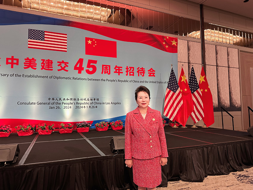 當(dāng)?shù)貢r(shí)間2024年1月26日下午,由中華人民共和國(guó)駐洛杉磯總領(lǐng)事館舉辦的“紀(jì)念中美建交45周年招待會(huì)”在洛杉磯舉行。美寶集團(tuán)董事局李俐受駐洛杉磯總領(lǐng)事郭少春及夫人王薇之邀出席。洛杉磯州、郡、市政要和各界友好人士約200人出席,共同回顧中美建交初心,展望中美關(guān)系未來(lái);并暢談交流、共敘友誼,歡度中國(guó)春節(jié)。
