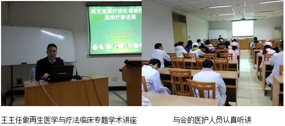 2012年11月27日,中國(guó)中西醫(yī)結(jié)合學(xué)會(huì)燒傷專(zhuān)業(yè)委員會(huì)常務(wù)兼秘書(shū)、《中國(guó)燒傷創(chuàng)瘍雜志》副總編輯、北京美寶燒傷創(chuàng)瘍研究所副所長(zhǎng)、第二臨床研究部主任王洪生研究員應(yīng)重慶市江陵醫(yī)院的邀請(qǐng)來(lái)到該院,為全院醫(yī)護(hù)人員做了一場(chǎng)精彩的學(xué)術(shù)講座。聽(tīng)取此次學(xué)術(shù)講座的有該院泌尿外科、肛腸外科、骨科、腦外科、胸外科、婦產(chǎn)科、皮膚科、口腔科、五官科、精神科等科室近60余人參加。下午3點(diǎn)培訓(xùn)會(huì)準(zhǔn)時(shí)開(kāi)始,王主任以“再生復(fù)原療法在難愈性創(chuàng)面治療新進(jìn)展”為題做了精彩的學(xué)術(shù)報(bào)告,全面講解了再生醫(yī)學(xué)的相關(guān)概念,并結(jié)合大量的病例圖片講解了再生醫(yī)療技術(shù)骨外露、鋼板外露、糖尿病足、褥瘡等各種難愈合創(chuàng)面的治療過(guò)程及要點(diǎn),講解了再生醫(yī)療技術(shù)在各個(gè)臨床科室的應(yīng)用。此場(chǎng)報(bào)告深深的震撼了在場(chǎng)的每一位醫(yī)護(hù)人員,會(huì)議結(jié)束后,大家還不愿離去,爭(zhēng)先恐后的提問(wèn),王洪生研究員都一一解答。