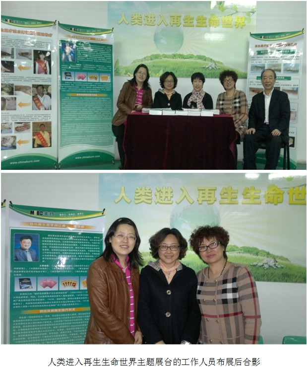 配合會議主題學術報告,北京片區(qū)專門在報告廳的門口布置了人類進入再生生命世界主題展臺,為參會的臨床醫(yī)生提供了專家咨詢交流的平臺,并贈閱學習資料,大家對《中國燒傷創(chuàng)瘍雜志》、《燒傷皮膚再生醫(yī)療技術臨床手冊》、《再生醫(yī)療技術臨床應用指導叢書》(褥瘡、糖尿病足、肛腸疾病、皮膚病、難愈創(chuàng)面等分冊),受到參會醫(yī)生的歡迎,韓國的樸成煥教授饒有興趣的到展臺前進行咨詢,他認真聽取肖摩教授講解再生醫(yī)療技術臨床應用規(guī)范和療效的情況之后,感嘆美寶的神奇療效,要結合整形美容專業(yè)應用于臨床。