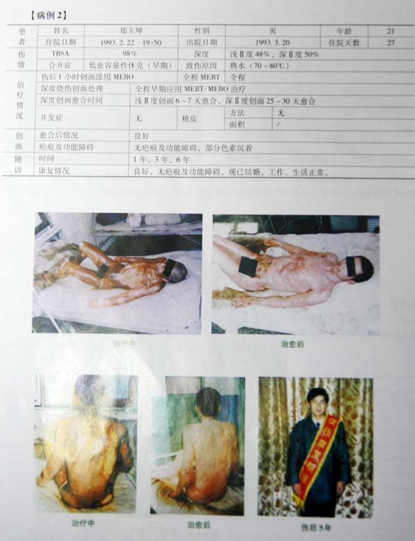 中國中西醫(yī)結合學會燒傷專業(yè)委員會全國醫(yī)療網(wǎng)廣大醫(yī)護人員應用燒傷皮膚原位再生技術成功救治了大量的重癥燒傷患者,在歷次全國燒傷創(chuàng)瘍學術會議上,經(jīng)過專家委員會評審,已經(jīng)有100名經(jīng)治醫(yī)師獲得“全國燒傷康復明星獎”,以下展示的是部分獲得獎勵的大面積重癥燒傷患者應用燒傷皮膚原位再生技術治療前、治療中和康復后的圖片和病例資料。