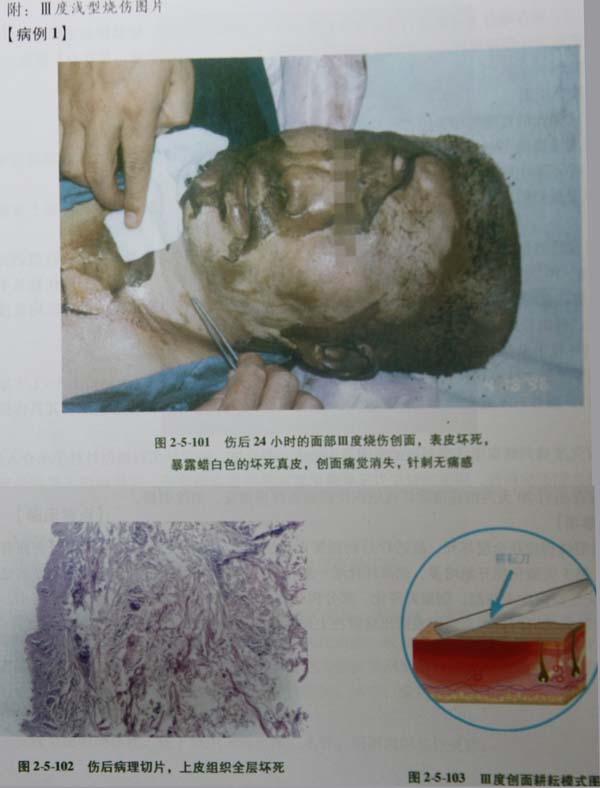 達全層皮膚,即燒傷創(chuàng)面的表皮真皮組織全層凝固壞死。