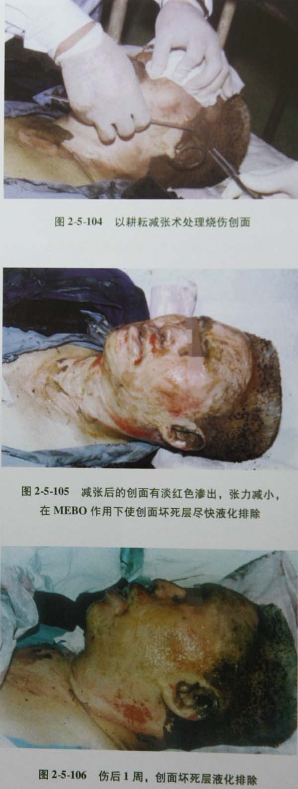 (4)應在傷后20天內(nèi)徹底清除壞死組織使創(chuàng)面新鮮再植皮,消除創(chuàng)面。
