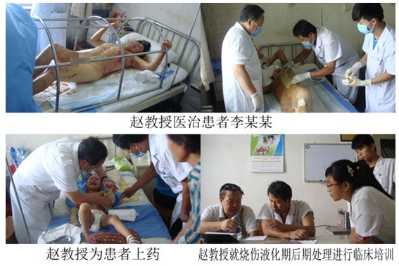 北京燒傷創(chuàng)瘍研究所趙瑞慶教授第一時間趕到了該醫(yī)院,在院領(lǐng)導(dǎo)的協(xié)調(diào)下,積極參與了搶救工作。截止到8月20日,使用再生復(fù)原技術(shù)治療兩例大面積燒傷病人,安全度過了休克期、感染期,平穩(wěn)過渡到創(chuàng)面修復(fù)階段。趙瑞慶教授利用星期天早會間隙時間,就如何正確認(rèn)識創(chuàng)面液化物,用創(chuàng)瘍貼保護創(chuàng)面軟薄膜、如何減少使用抗生素用量進(jìn)行了專題培訓(xùn)。趙教授在菏澤創(chuàng)傷醫(yī)院搶救病人期間和該院鄭連榮、楊鳳民院長就北京燒傷創(chuàng)瘍研究所與菏澤創(chuàng)傷醫(yī)院持久長期技術(shù)合作達(dá)成了一致意見。