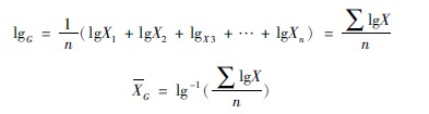 G為幾何均數(shù),X1,X2…為各變量值,n為總頻數(shù)。上式可以寫(xiě)成對(duì)數(shù)形公式(365)和加權(quán)公式(366):