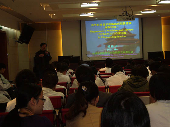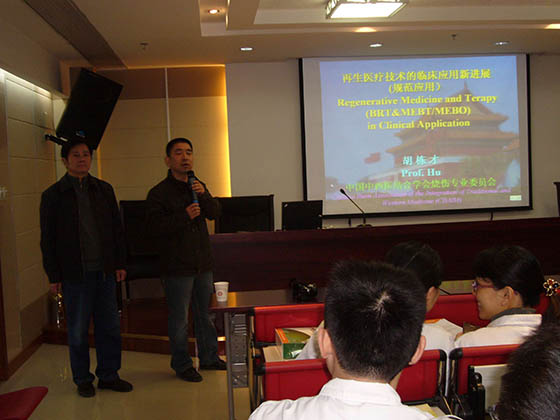 2012年8月及11月6、7日,中國中西醫(yī)結合學會燒傷專業(yè)委員會秘書長、北京燒傷創(chuàng)瘍研究所所長、《中國燒傷創(chuàng)瘍雜志》副主編胡棟材教授,應邀前往杭州市第一人民醫(yī)院、老年病醫(yī)院(杭州市第一人民醫(yī)院分院)、杭州市第三人民醫(yī)院、浙江省中醫(yī)院、東方醫(yī)院(浙江省中醫(yī)院下沙分院)、杭州市中醫(yī)院、杭州中西醫(yī)結合醫(yī)院(紅十字會醫(yī)院)、長廣煤山職工醫(yī)院等多家醫(yī)院進行再生醫(yī)療技術創(chuàng)面修復培訓講座。