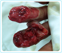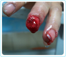 手是人體的一個重要器官,具有高度發(fā)達(dá)的運(yùn)動和感覺功能。手部解剖精細(xì)、結(jié)構(gòu)復(fù)雜、組織密集、相互交錯,共由27塊骨、19塊肌肉、17條肌腱以及眾多神經(jīng)、血管、腱鞘、滑囊等組織構(gòu)成。它們相互協(xié)同作用,完成比較復(fù)雜繁鎖的工作。隨著機(jī)械化程度的提高以及交通事故和生活上意外事故的上升,很容易造成手部損傷,尤其是手指的外傷非常常見。國外文獻(xiàn)報(bào)道,在急診創(chuàng)傷病例中,手外傷所占的比例在15%~28.6%在之間。特別是手指末節(jié)、指端損傷較常見。